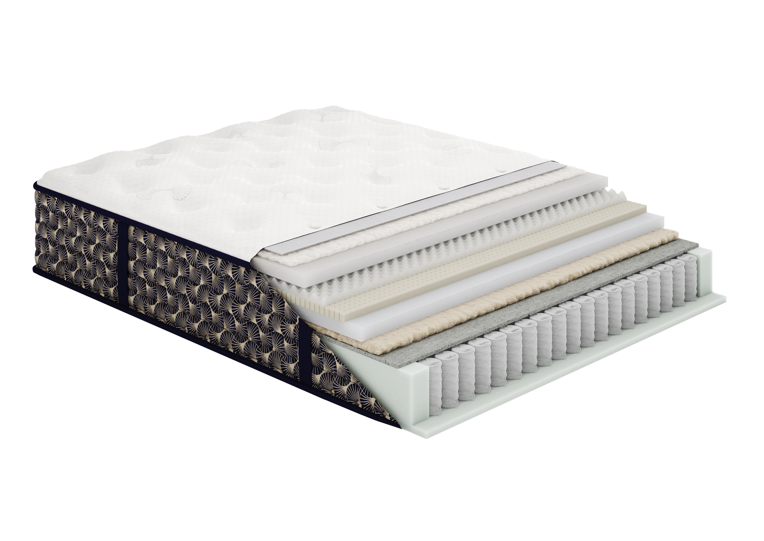 The Night Stars II features exquisite natural materials such as silk, wool, cotton and latex. Meticulously sourced for sustainability, durability, and comfort, this refined ensemble of layers enhances airflow and helps regulate temperature as you sleep.